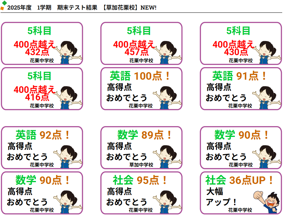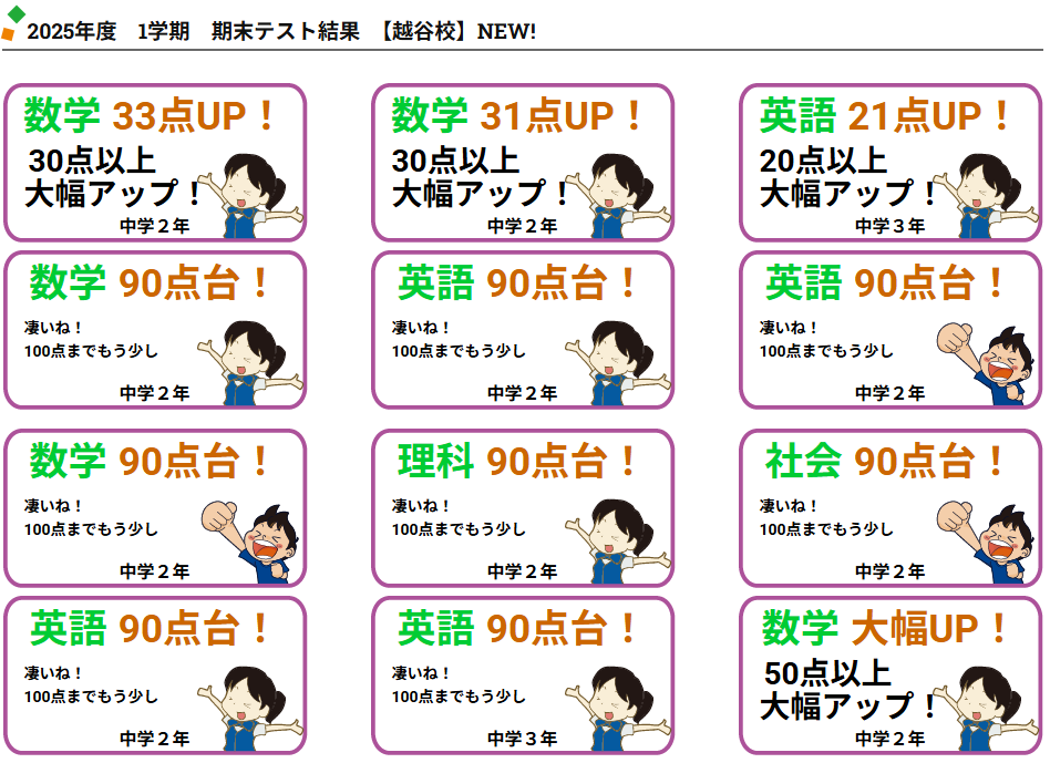定期テスト前の対策授業など5教科全体の成績を上げるための指導にこだわっております。